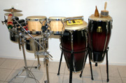 Congas, Bongos, Timbales, Cajon, Klavier, Keyboard, Gitarre und viele Kleinpercussion. So hat
